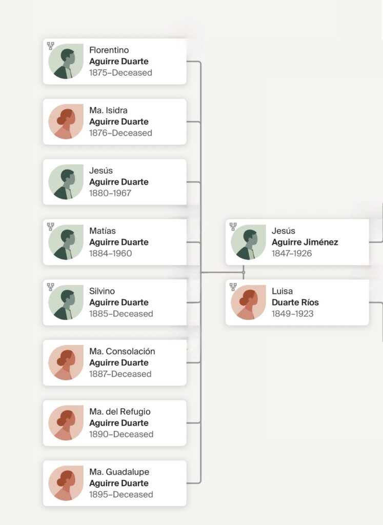 Jesús Aguirre Jiménez y Luisa Duarte Ríos, si no tenemos mal o insuficientes los datos, tuvieron ocho hijos. Cuatro varones y cuatro mujeres que mencionaremos enseguida: